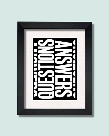 Black Mounted Framed Black 'Questions/Answers' Screen Print - Anthony Burrill