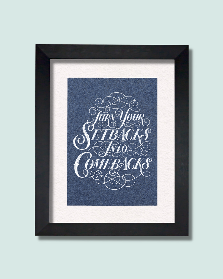 Black Mounted Framed Imperial Blue 'Setbacks into Comebacks' Screen Print - Alexandra Snowdon