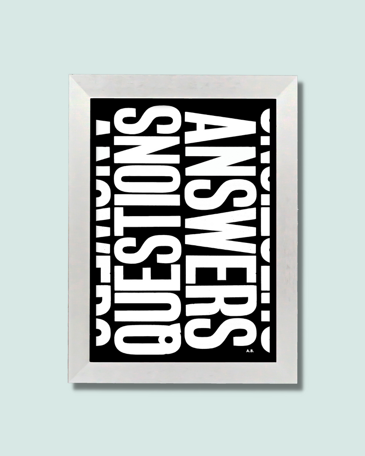 White Closed Framed Black 'Questions/Answers' Screen Print - Anthony Burrill