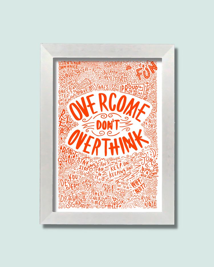 Overcome don't Overthink is a message to myself, created to inspire myself and others in more difficult moments. Suffering from anxiety is a daily battle for me but having little ways of getting through it really helps. Both creating this illustration and looking back on it help me on days when I'm struggling.