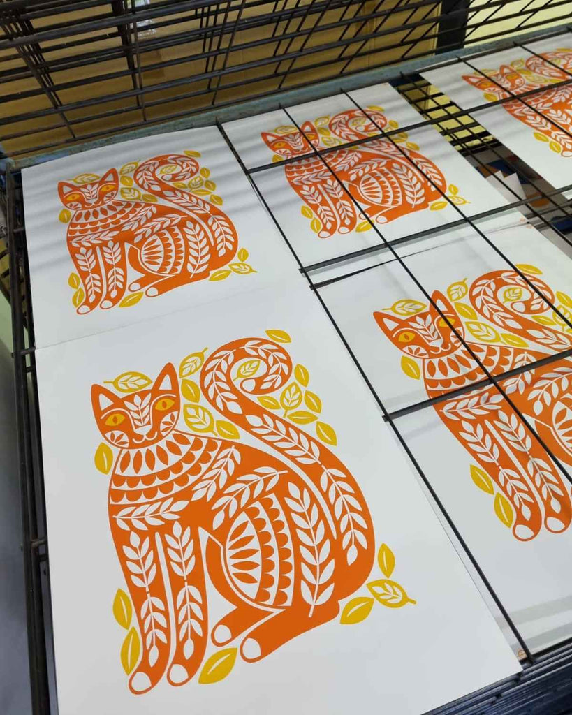 This art was hand screen printed using eco-friendly, water-based inks, onto premium 270gsm British made 100% recycled G.F. Smith card.