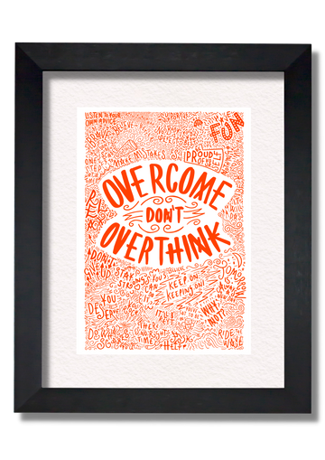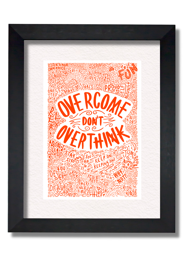 Overcome don't Overthink is a message to myself, created to inspire myself and others in more difficult moments. Suffering from anxiety is a daily battle for me but having little ways of getting through it really helps. Both creating this illustration and looking back on it help me on days when I'm struggling.